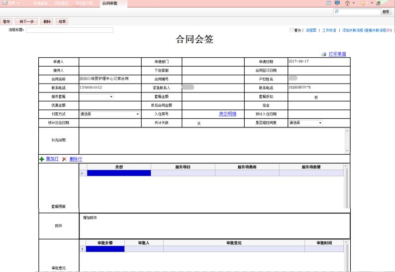 主要实现对已经达成意向签约的客户进行合同的签订、审批、变更等管理。