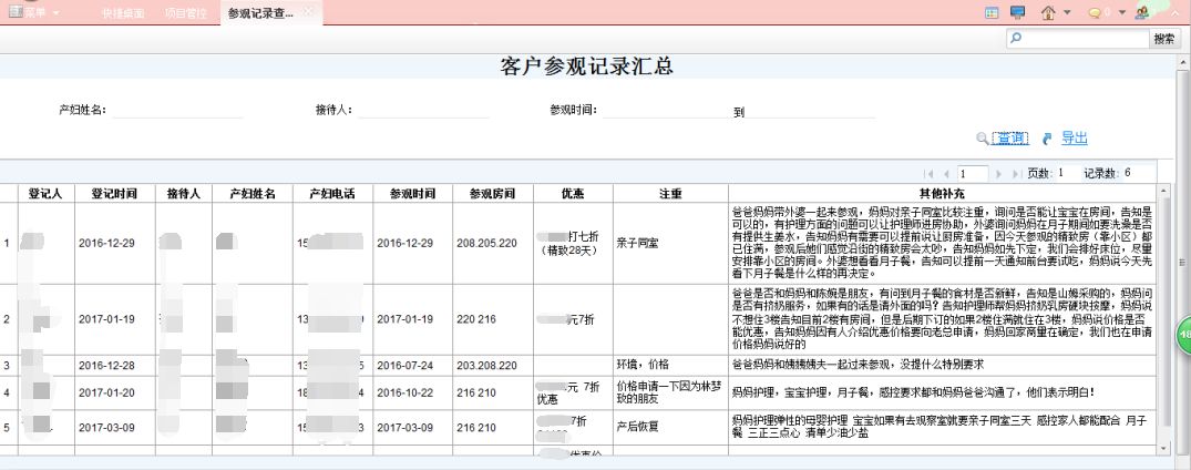 3、参观记录:对到店参观客户的注意事项和要求等信息做一个录入。